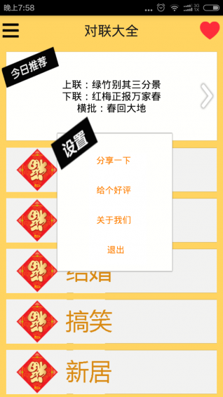 春联app是一款手机新年祝福软件,春联app可以把你设计的春节祝福,送给家人朋友,让他们收到最特别的新春祝福吧,马上就要春节了,有需要的朋友还不快来下载体验。