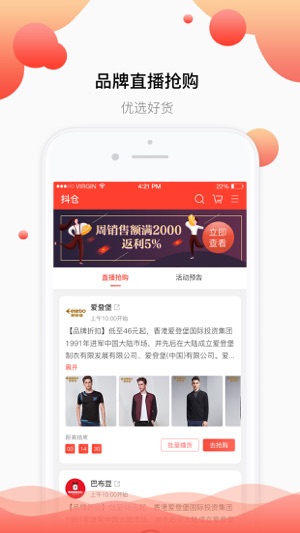 抖仓是移动端品牌折扣货品分发销售平台(StoBtoC模式),上百万去中心化的代理私密的帮助你销售库存。