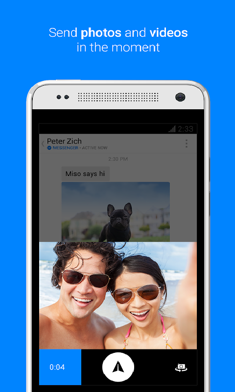 照片和视频:拍摄视频,捕捉自拍或其他照片,尽在应用之中,一触即可发送。