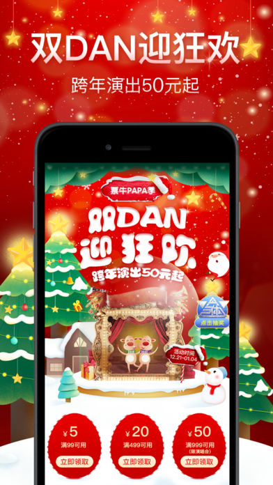 圣诞元旦不知道去哪嗨?快来参加票牛PAPA季双DAN狂欢活动,50元超值优惠、大牌演出尽在票牛网!