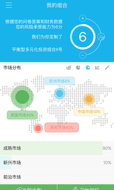 谱蓝致力于为客户提供量身定制的多元化投资组合,根据客户家庭财务数据,利用全球化视野和全球领先的智能算法,自动为客户优化投资组合,抓住机会,规避风险。