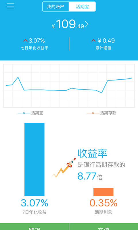 活期宝收益高,取现快,充值免费,取现免费,更享超多理财折扣。