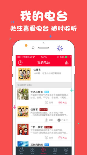 这是一个有声世界的优酷,个性化手机电台,打开您的有声娱乐的世界!