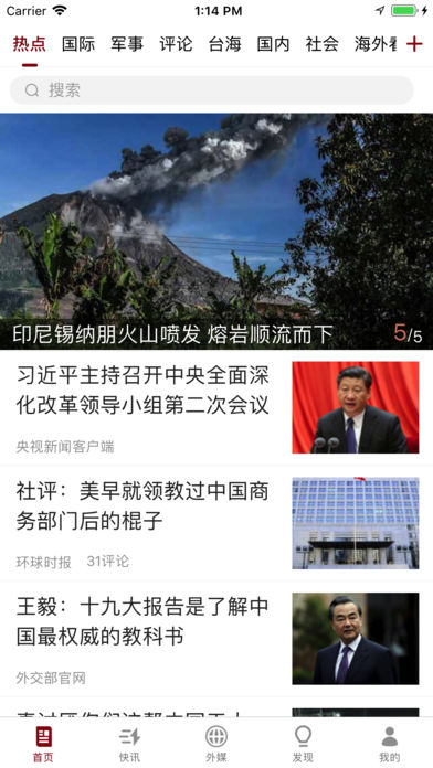 新版《环球TIME》新闻客户端增设热点、评论、海外看中国等十多个栏目,用户可根据喜好自主设置,打造私人阅读空间。