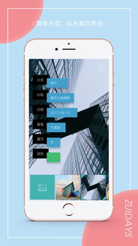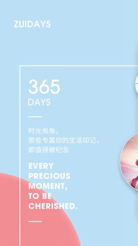 最美时光是一款好用清新的记录软件,本作优雅的图片、清秀的文字、简约的界面,只有这些才配的上生活中那些重要的日子。喜欢的用户千万不要错过了哦。