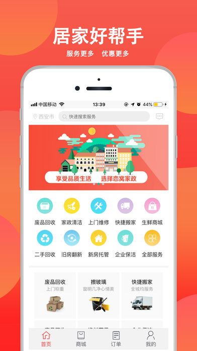 恋窝服务覆盖60多项家庭生活服务,提供专业的保洁服务、废品回收、家具家电回收、维修安装,搬家服务、居家换新等家庭生活服务。