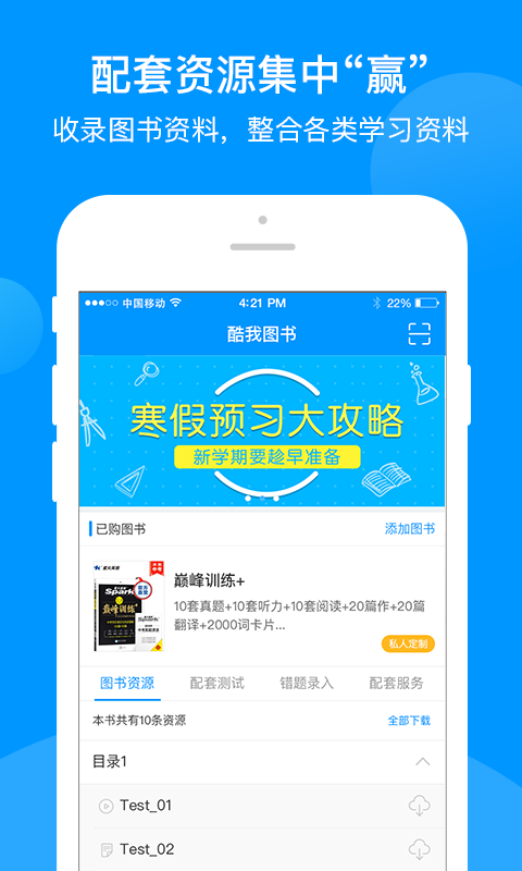 巅峰训练app是一款以测评为入口的智能学习软件,在这里,你可以随时在线下载学习资源,进行测试、个性诊断、知识问答等操作,让学习更高效。