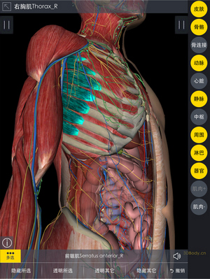 3DBody解剖是一款非常好用多的3D人体解剖图软件,这款软件能够很好的帮助用户们去学习观察了解人体的各种特征等等,使用起来还是非常的简单方便的,软件运行十分的流畅。