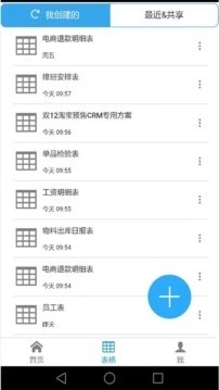 点击表格按钮,打开“我创建的”以及“共享&最近”两个列表。