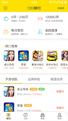 3、玩应用:用户可以通过安装使用应用以及评论等方法赚U币,下载app上的应用软件安装好后体验一会,就会收到U币,试玩过程中还可以发现好玩的应用