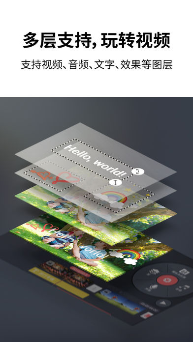 支持视频、音频、文字、效果等视频层,丰富你的视频内容,玩转创意