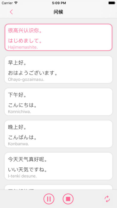 本应用精选出日语最常用的短语句子,制作成日语播放列表,供大家零基础快速入门日语,并有效锻炼日语口语。