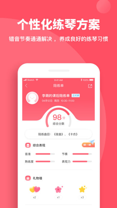 上课透明效果跟进。课后专业点评并针对性指导,随时回放,重点复习,记录孩子练琴路上的每一步。