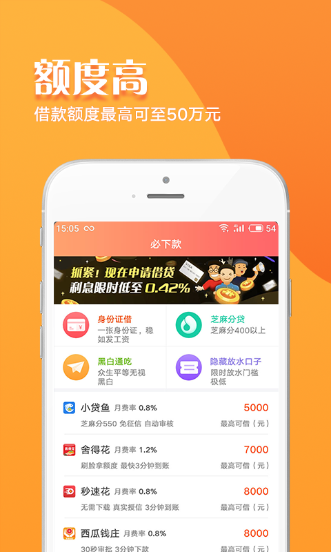 2. 下款无忧:海量贷款产品每天更新,月利率低至0.3%,1分钟放款,还款期限灵活;