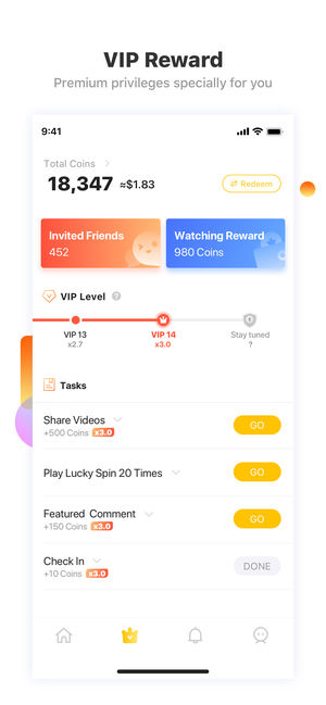 VeeU为一款海外短视频APP,用户利用碎片化时间看短视频并可获取奖励。