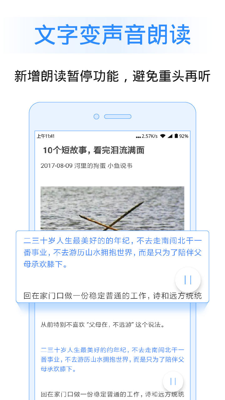 语音朗读你的笔记、收藏的各类读物等,解放双眼,更有多种发音人任意挑选。