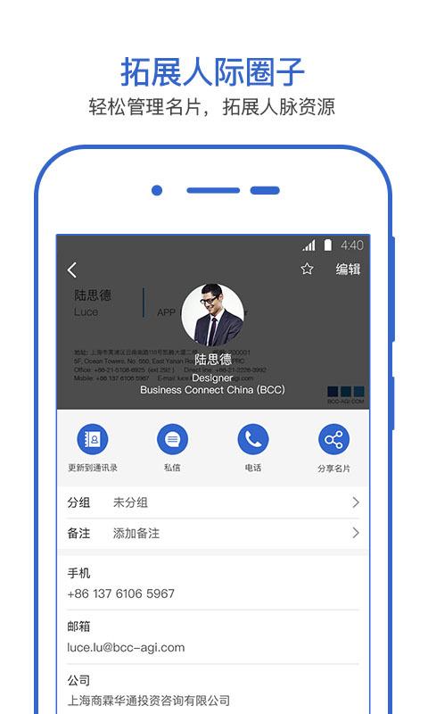 电子名片夹轻松管理,随时随地工作聊天两不误。