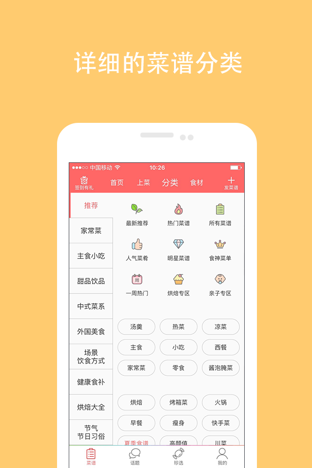【高效:海量菜谱,分类直达】