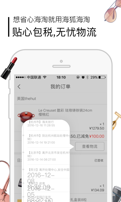 4、直邮免税:海外官网直邮发货,若被征收关税,海狐海淘全额报销,百分百包税!