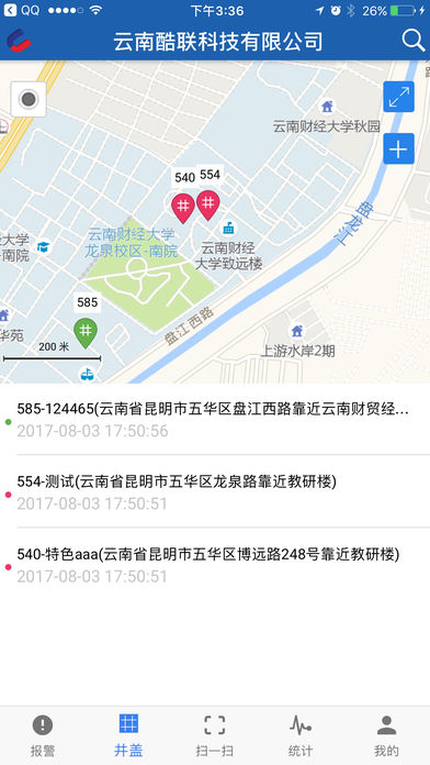 用户注册后可免费使用,查看自己所属机构的电子井盖及井盖丢失传感器的报警事件。