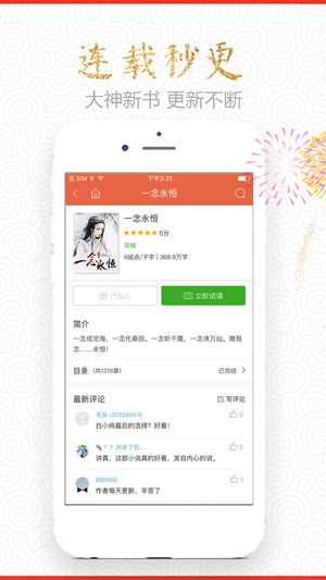 1.提供海量网络原创文学、畅销书、出版物阅读。