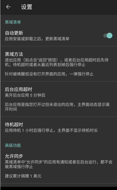 黑域通过事件智能判断您是否在使用应用,当您打开某个应用,使用完退出(如按“返回”)以后,黑域会待机它;待机超时,或者从最近列表划掉它,黑域会强行停止它。对于任何没有打开界面的唤醒,只要您没有打开过,都将强行停止它。同时,您也可以为应用设置“允许同步”,它们有不可取消的通知,或有前台服务时不会处理它;有通知,或者在后台运行时,至多只会待机它。