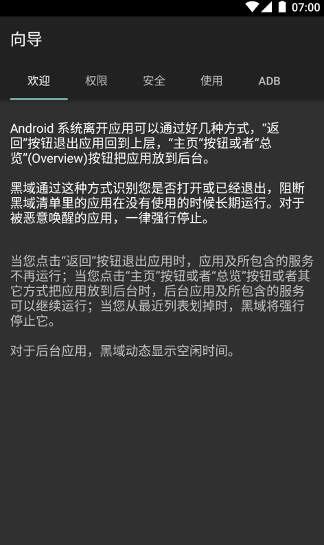 黑域支持 Android 5.0 到 7.1,不需要 ROOT,但是依赖“开发者选项”中的“USB调试”。本人主要在 Google Pixel 上使用。
