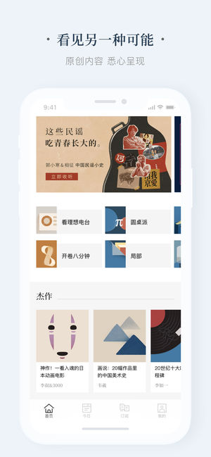 提供一系列阅读、思考和审美能力的长期养成方案。我们邀请到了至为优秀的知识摆渡人与与您一路同行。首期上线的就有杨照的《中国经典导读》、以及焦元溥的《一听就懂的古典音乐史》。