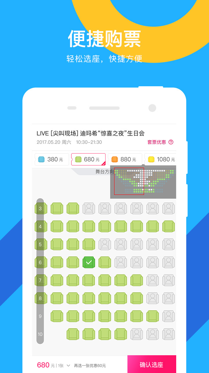 2. 票价选择、座位选择、下单信息优化,数量、优惠展示更为清晰;