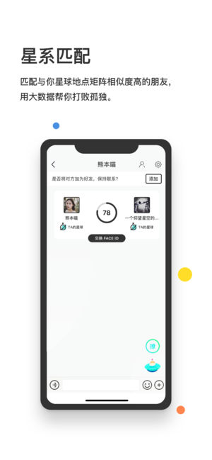 脸球app是一款穿梭次元的星际社交APP。在脸球app这里,原力弱的星际旅行者无法匹配到原力高的星际旅行者,而原力的高低取决于你在现实世界的生活精彩程度,虫洞的初衷是让精彩的人遇上精彩的人。