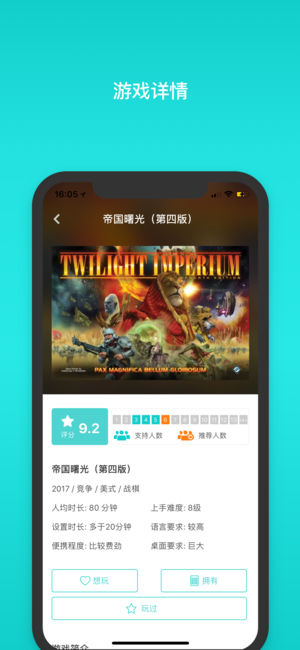 集石桌游app注册用户可保存“喜欢、拥有、评分、短评”游戏,帮助管理玩家的桌游库。