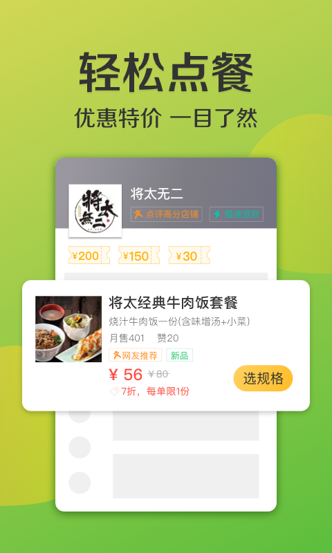 用手机下单更优惠,不出门不下厨房即可享受各地区特色美食外卖,天天都是美食节!