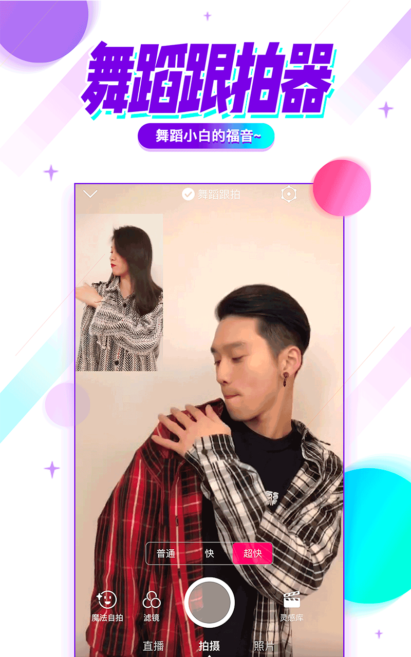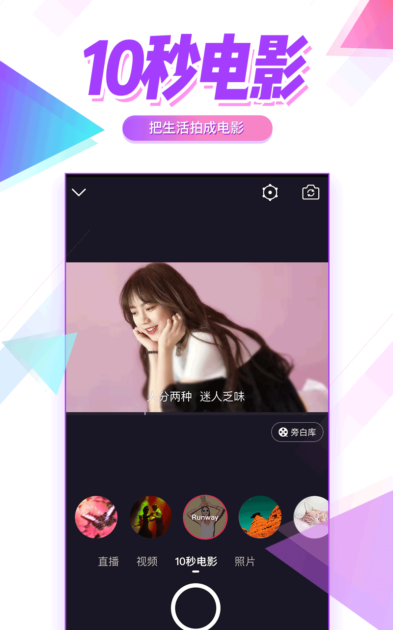 美拍颠覆性的短视频新玩法!智能剪辑视频,搭配数十款精美滤镜,让普通视频1秒变大片,你就是导演!还有独家“照片电影”功能,让照片也能轻松变电影哦!