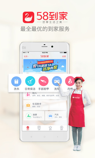 58到家,58同城旗下自营生活服务。我们是值得信赖的互联网生活服务平台!高品质生活服务的倡导者!我们提供家庭保洁、美甲、家居保养、家电清洗、搬家、维修等服务,帮您解决生活中的各种琐事难题!