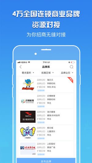 2、共享品牌商家资源:卖铺宝支持商铺招商业务,优铺品牌库积蓄4万个全国连锁品牌,也吸纳本地商业品牌,实现资源共享。