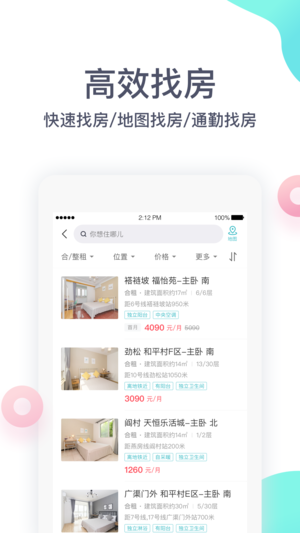 1.海量真实房源,提升您的看房体验;
