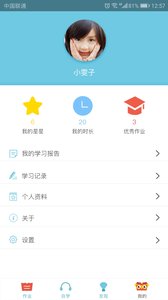 学生可以在线完成作业,实时接收作业反馈,还可以进行听读口语练习;更有多种多样的课程、绘本资源以及趣味实用的英语短文来丰富孩子们的英语学习的一款APP。软件包括四大模块:作业、自学、发现、我的。