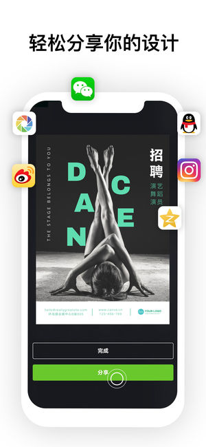直接分享到你喜爱的社交媒体帐户,包括Instagram 和 Google+。或者,将你的设计保存到相机相册中并通过电子邮件、短信等进行分享。