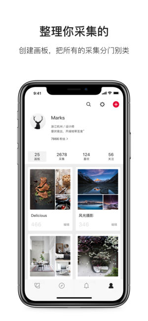 - 创建自己的画板,整理和展示你的采集,让别人更了解你。