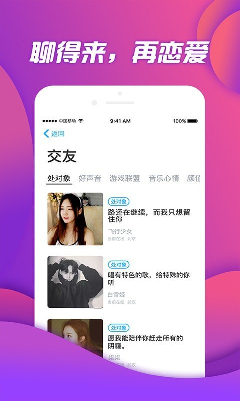 快速处CP,触动心跳,尽情搭讪高颜值女神在线,有段恋爱等你来读真人语音交友,语音连麦更亲密私密聊天,情话放心说
