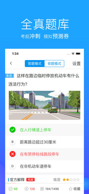 车轮考驾照2019这个在界面上设计虽然还是一股浓浓的前苹果味,但这个布局设计确实很漂亮,类容上的整合个人觉得比驾考宝典要全面些,很多的只是点分类解析很全面。