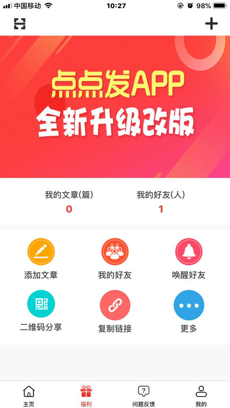 点点发是一款可以阅读、转发文章赚钱的手机软件,每天闲暇时点一点手机做任务赚钱,并且任务也有很多种选择,非常的轻松简单。