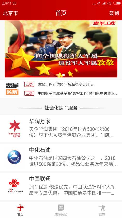 持惠军卡享购物、通讯、医疗、保障、加油等惠军专属优先优惠服务。