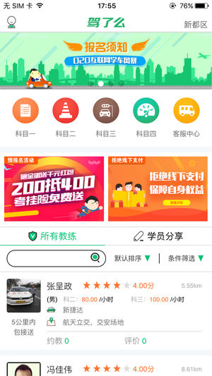 省心:学员自由更换教练,今天不满意,明天换一个。