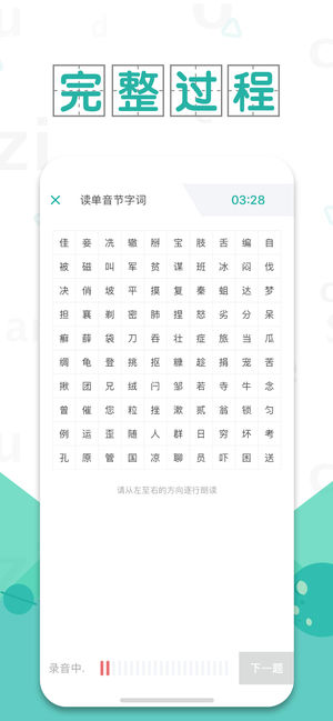 包涵声母、韵母、声调、方言纠正等学习和测试,根据发音到拼音的声母、韵母、声调,找出发音薄弱点,针对性推荐学习课程,减少没必要的学习时间,提高80%普通话学习效率!
