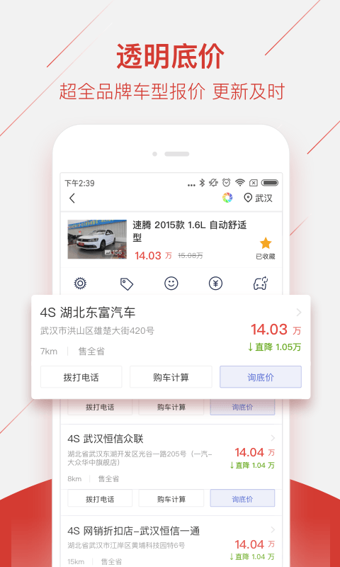 一键询价、全城汽车比价,电话砍价,帮你轻松直击底价;