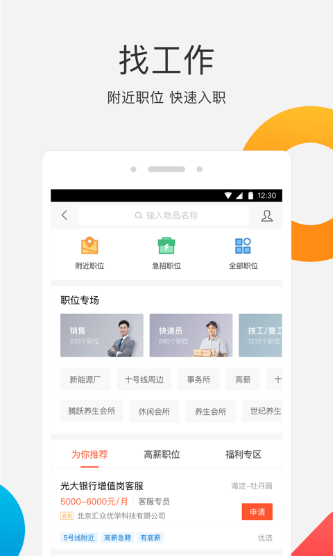 58同城手机客户端app,58同城官方移动终端。58同城手机客户端app是界内评价很高的一个平台,找房租房二手房,应聘求职找工作,全靠它,还有更多便民服务功能等你来发现。