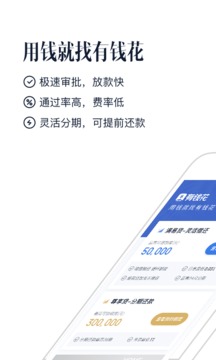 有钱花为您提供方便快捷安心的借款服务,仅需填写身份信息,提交材料后30秒后即可获得借款额度,最高额度200000元。想用钱随时借款,提前还款无违约金,可以灵活选择分期方式。