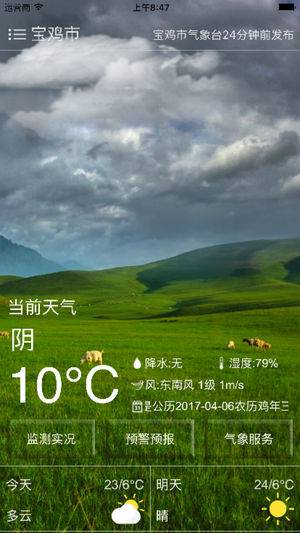 宝鸡天气-公众版app是针对宝鸡市辖区气象信息的App。