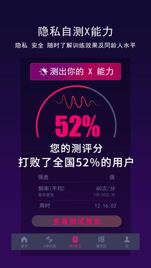 吱呀app是一款两性健康软件,吱呀安卓版专为男性用户打造,为用户带来更加专业的数据分析功能,用户可以在这里与同龄人对比,了解自己的短板,提升自己的能力,男人不能说不行。
